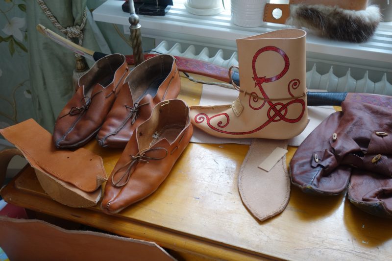 Alla hade skurit ut material och börjat och förstått vad de olika stegen innebar och sömnadskitten gick åt och jag tror många skor kommer bli klara här pö om pö under vårkvällarna. Det finns således goda förutsättningar för att vi har ett skoklätt gäng på knäcke iår.